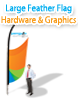 The Large Feather Flag is 5.5 meters in height and can be purchased separately as hardware or single-sided graphics (fl-fflrgg) or double-sided graphics (fl-fflrgg2). This product can also be purchased as both graphics and hardware (single-sided fl-fflrgkt, double-sided fl-fflrgkt2).