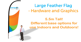 The Large Feather Flag is 5.5 meters in height and can be purchased separately as hardware (fl-fflrgh) or single-sided graphics (see product fl-fflrgg) or double-sided graphics (see product fl-fflrgg2).