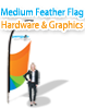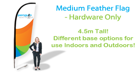 The Medium Feather Flag is 4.5 meters in height and can be purchased separately as hardware or  single-sided graphics (fl-ffmedg) or double-sided graphics (fl-ffmedg2). This product can also be purchased as both graphics and hardware (single-side fl-ffmedkt, double-side fl-ffmedkt2).