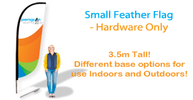 The Small Feather Flag is 3.5 meters in height and can be purchased separately as hardware or single-sided graphics (fl-ffsmg) or double-sided graphics (fl-ffsmg2). This product can also be purchased with both graphics and hardware (single-side fl-ffsmkt, double-side fl-ffsmkt2).
