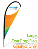 The Large Tear Drop Flag is 5.5 meters in height and can be purchased separately as hardware, or single-sided graphics only (fl-tdlrgg) or double-sided graphics only (fl-tdlrgg2). This product can also be purchased as both graphics and hardware (single-side fl-tdlrgkt, double-side fl-tdlrgkt2).