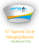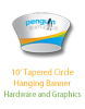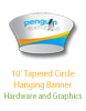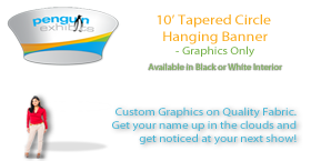 This product is graphics for the 10ft Tapered Circle Cloud Cover Hanging Sign with a black interior (product cc-tch). This product is constructed with an aluminum frame, bungee cord and push clip connectors with tensioned fabric dyesublimation graphics.