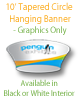 Get your name up in the clouds with the 10ft Tapered Circle Cloud Cover (height 42"). This hanging banner will get you noticed from practically anywhere in the exhibit hall. Each cloud cover is constructed of a high quality frame and fabric graphics. This product includes both hardware and graphics resulting in a 10% discount. This product is constructed with an aluminum frame, bungee cord and push clip connectors with tensioned fabric dyesublimation graphics.