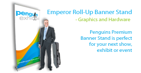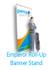 The Emperor Roll-Up Banner Stand provides effortless set up and take down in a lightweight, self-contained unit. This premium single-sided unit weighs less than 16 lbs. in the standard transport case (included). The sleek, modern base will compliment any location from the trade show floor to the in-store sales floor. This product includes both hardware and graphics resulting in a 10% discount.