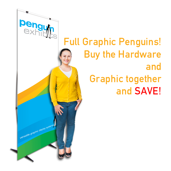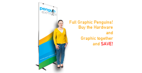 Our Standard Full Graphic Penguin is perfect for trade shows, exhibitions, store openings, specials or any event that needs a bold statement. The Standard Full Graphic Penguin is 86.25” high and is available in 4 widths from 23.6" to 31.5". Each unit includes a convenient, compact transport case. This product includes both hardware and graphics resulting in a 10% discount.