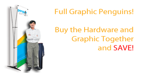 Our Standard Full Graphic Twin Penguin is perfect for trade shows, exhibitions, store openings, specials or any event that needs a bold statement. The Standard Full Graphic Twin Penguin is 86.25” high and is available in 4 widths from 23.6" to 39.4". Each unit includes a convenient, compact transport case. This product includes both hardware and graphics resulting in a 10% discount.