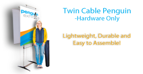 Our Standard Twin Cable Penguin is perfect for trade shows, exhibitions, store openings, specials or any event that needs a bold statement. The Standard Twin Cable Penguin is 86.25” high and is available in 4 widths from 27.5" to 39.4". Each unit includes a convenient, compact transport case.